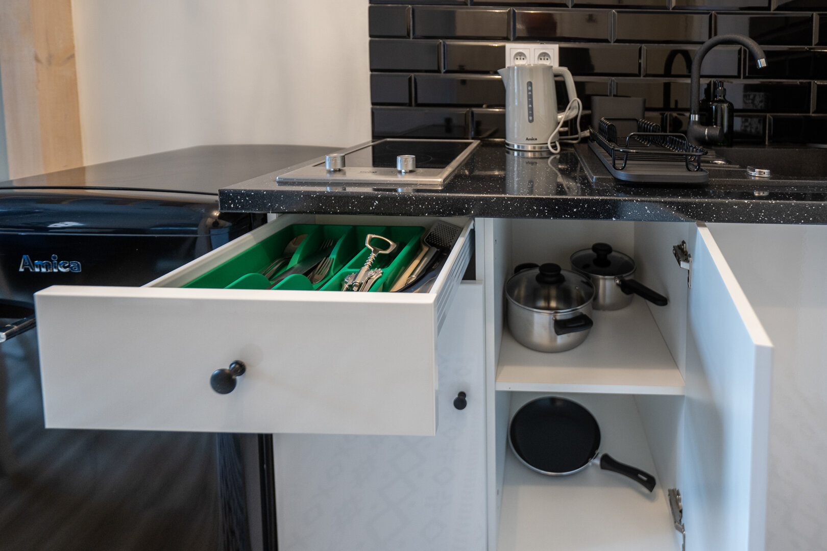 W części wspólnej znajduje się również kuchenka mikrofalowa pozostająca do dyspozycji wszystkich gości.