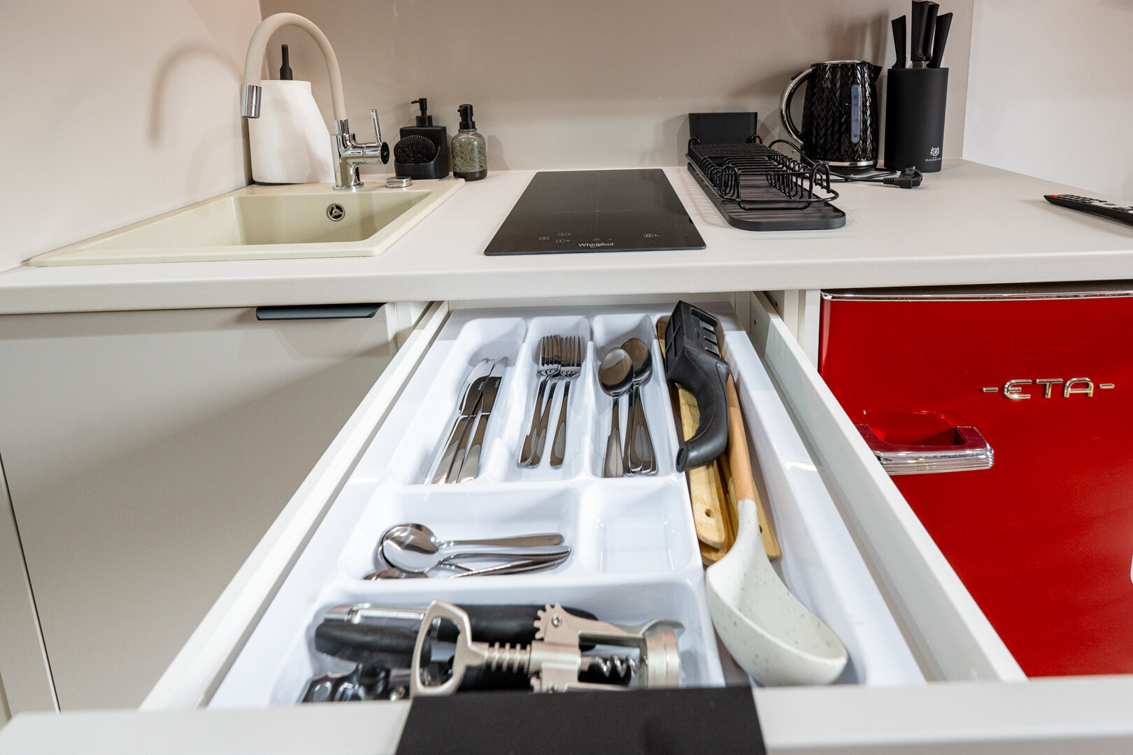 Jasne studio inspirowane latem: turkusowa lodówka, kolorowe płytki i lekkie tkaniny tworzą wakacyjny klimat w centrum miasta. Wygodne łóżko małżeńskie i rozkładana sofa pomieszczą do 4 osób. Aneks kuchenny, szybkie Wi-Fi oraz Smart TV z Netflixem sprzyjaj